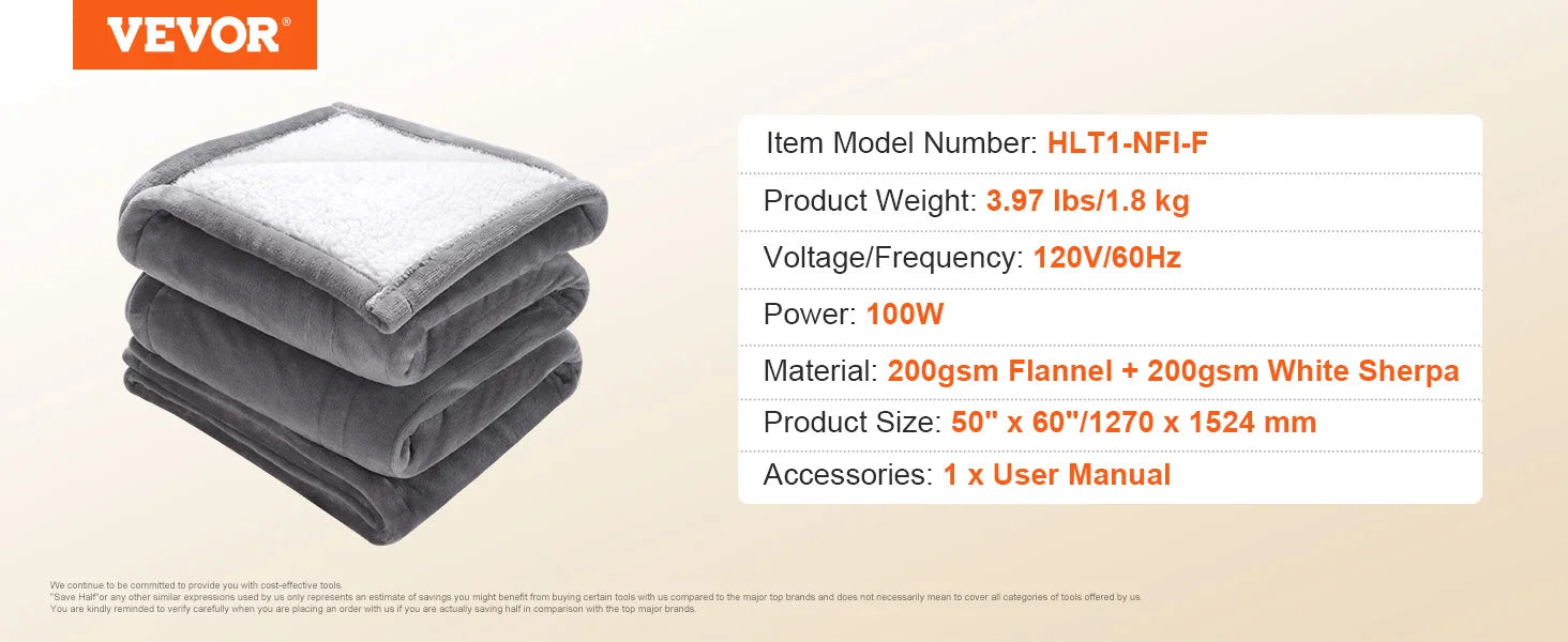 VEVOR Heated Blanket Electric Soft Flannel & Sherpa Heating Blanket